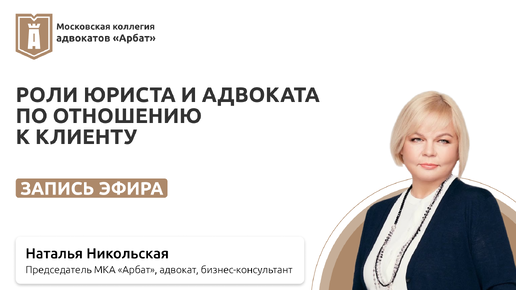 Роли юриста и адвоката по отношению к клиенту. Запись эфира.