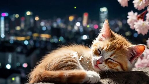 Колыбельная. Милый котенок спит под деревом сакуры. Котки