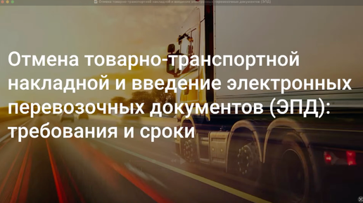 Отмена товарно-транспортной накладной и введение электронных перевозочных документов (ЭПД)