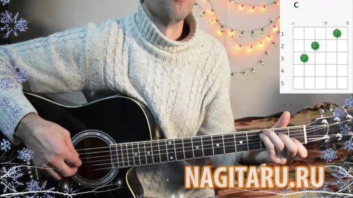 Детская, новогодняя песня под гитару - Снежинка. Аккорды в C и разбор -Nagitaru.ru