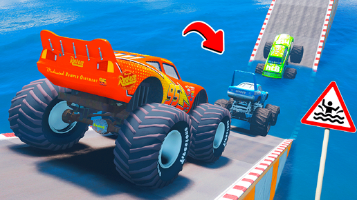 СМОГУТ ЛИ ГИГАНТСКИЕ МАШИНЫ ИЗ ФИЛЬМА ТАЧКИ ПРОЕХАТЬ БОЛЬШУЮ ЛУЖУ В ГТА 5 МОДЫ - ЭКСПЕРИМЕНТЫ в GTA 5 MODS