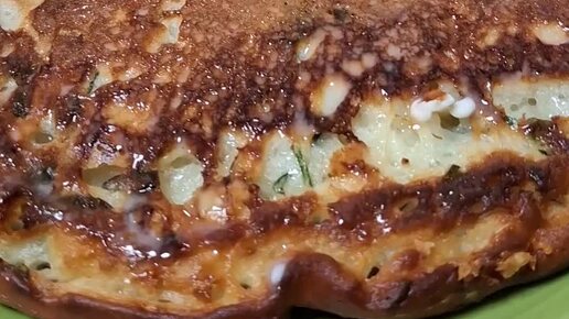 Ленивый хачапури, лепешка с сыром и зеленью, на сковороде