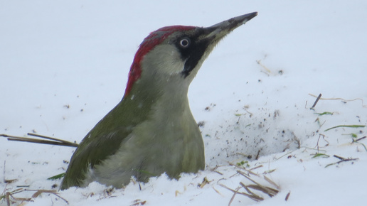 Долбить можно не только деревья! Зеленый дятел проводит подснежные земельные работы.