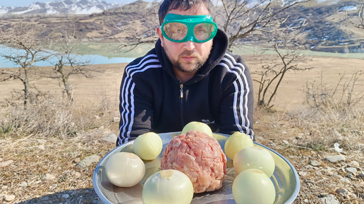 Фаршированный лук приготовления на природе.
