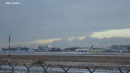 Airbus a380-800 Emirates красиво раздул снег на взлете из Домодедово 18.02.25.