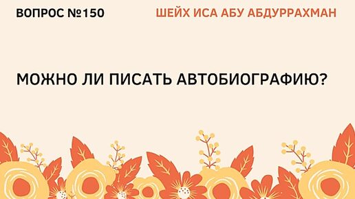 150. Можно ли писать автобиографию Иса Абу Абдуррахман