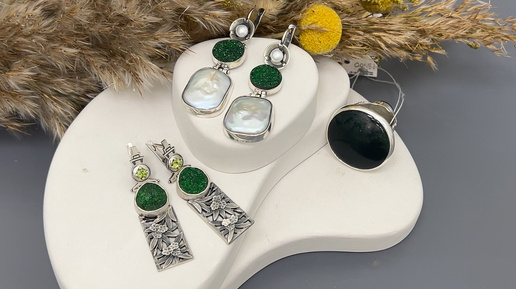 ИСКРЯЩИЙСЯ УВАРОВИТ И БАРОЧНЫЙ ЖЕМЧУГ- ИЗУМИТЕЛЬНОЕ СОЧЕТАНИЕ СЕРЕБРА С НАТУРАЛЬНЫМИ КАМНЯМИ