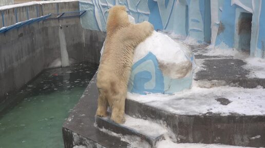 Кай вышел из бассейна и играет с канистрой на камне. 04.03.2025