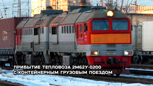 Прибытие тепловоза 2М62У-0200 с контейнерным грузовым поездом