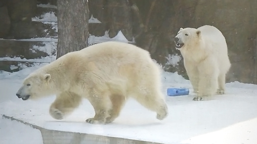 В вольере у медвежат Белки и Стрелки много игрушек, но они нарезают круги вокруг них.