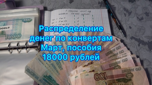 Распределение денег по конвертам . Система конвертов . Пособия , март , 18000 рублей