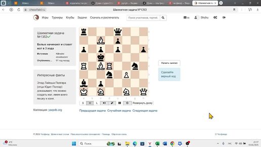 Чесфилд, задача 1353. Мат в 3 хода.