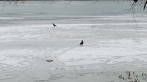 Кормящиеся птички. Пока лёд ещё не хрустнул.
