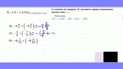 Сложение отрицательных чисел
