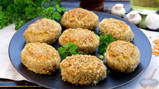 Белком богаты - насытят и без мяса! Котлеты из чечевицы с грибами