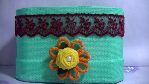 2 Поделки из пластиковых канистр . Декор канистр кухонным полотенцем фоамираном пряжей.