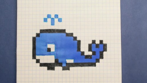 Как нарисовать кита по клеточкам. Простой рисунок. Рисунок по клеточкам