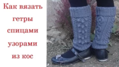 Как вязать гетры со швом узором из кос. Вязание на спицах.
