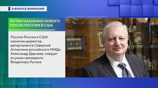 ⚡️Путин назначил директора департамента Северной Атлантики МИД РФ Александра Дарчиева послом в США