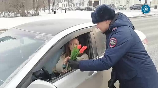 Тюльпаны и благодарности вручили тюменкам за рулем сотрудники Госавтоинспекции