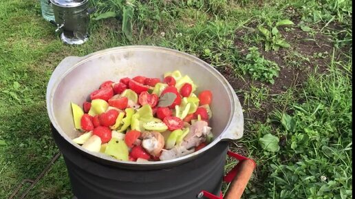 Готовлю на даче в казане ОЧЕНЬ ВКУСНОЕ ЖАРКОЕ ИЗ КУРИЦЫ с овощами _ Чай из САМОВАРА на шишках, видео переношу с Ютуб