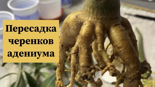 Адениумы. Пересаживаю черенки. Любуюсь корешками. Обрабатываю от мучнистого червеца. 6 марта 2025 г.