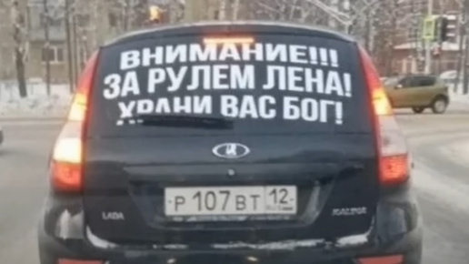 Прикольные смешные надписи на автомобилях. За рулем Лена - храни вас Бог