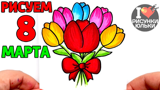 Простой Рисунок на 8 Марта / Как нарисовать красивый букет цветов / Рисунки Юльки на 8 Марта