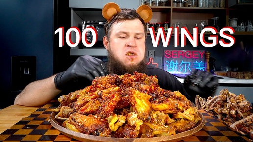 100 BBQ WINGS, EATING AND COOKING, ASMR MUKBANG, АСМР МУКБАНГ, 먹방, 大食い, たべる, 谢尔盖
