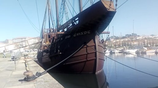 Реплика португальской каравеллы времен эпохи великих географических открытий. Вила ду Конде. Португалия.