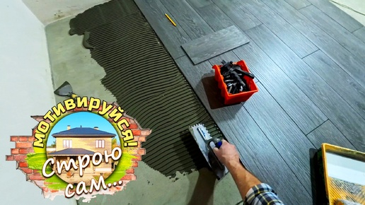 Керамогранит на "тёплый" пол в кухню с гостиной. Строю сам...