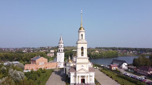 Наклонная невьянская башня и Преображенский собор, аэросъемка