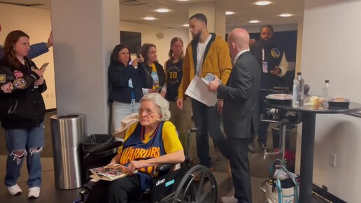 Stephen Curry meets up with Grandma Kitty after Warriors' game vs. the Nets _ NBA on ESPN
