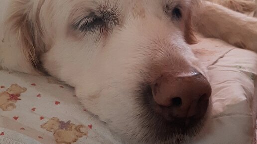 Старушка Сара, была найдена осенью 2024 года на кладбище. Истощенная, грязная, еле живая. Но мир не без добрых людей. Живём потихоньку 🦮