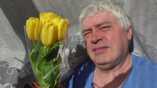 Солнце светит. У меня жёлтые цветы тюльпаны