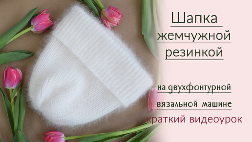 Шапка жемчужной резинкой из ангоры, краткий МК для двухфонтурной вязальной машины