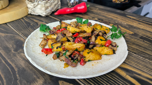 Жареная репа с мясом свинины и сладким перцем