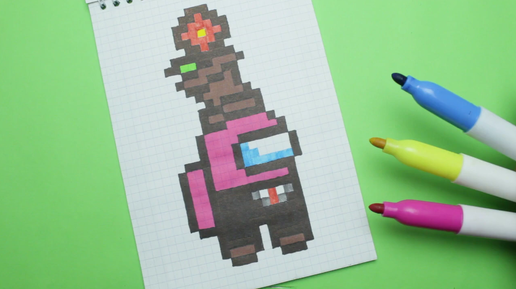 Как нарисовать амонг ас по клеточкам. В костюме с цветком на голове