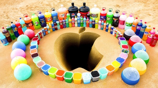 Эксперимент: Большое извержение зубной пасты из логотипа Apple iPhone 16 с гигантской Coca Cola и Fanta против Mentos