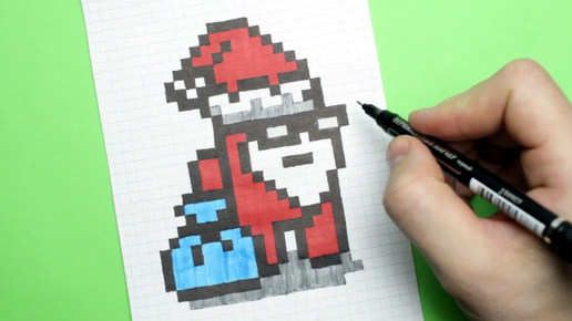 Как нарисовать Амонг Ас Дед мороз. Рисунок по клеточкам