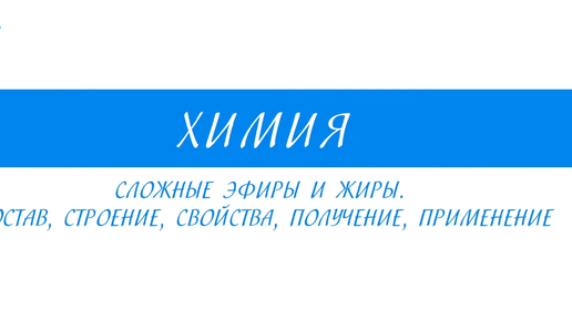 10 класс - Химия - Сложные эфиры и жиры. Состав, строение, свойства. Получение, применение