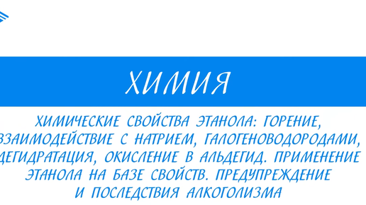 10 класс - Химия - Химические свойства этанола. Применение на базе свойств