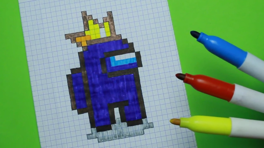 Рисунок Амонг Ас с короной на голове по клеточкам