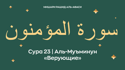 Сура 23 Аль-Муъминун — Верующие (араб. سورة المؤمنون). Читает Миша́ри ибн Ра́шид аль-Афа́си (араб. مشاري بن راشد العفاسي ).