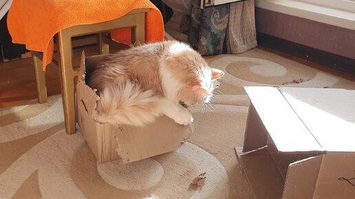 Коробка - любимая игрушка кота Осика. Котику 14 лет и он в отличной форме!