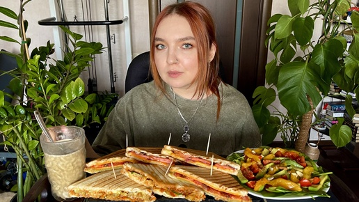 МУКБАНГ | Сэндвичи с тунцом, колбасой, томатом и песто, салат с манго и авокадо, цикорий с лавндой 🥪🥗