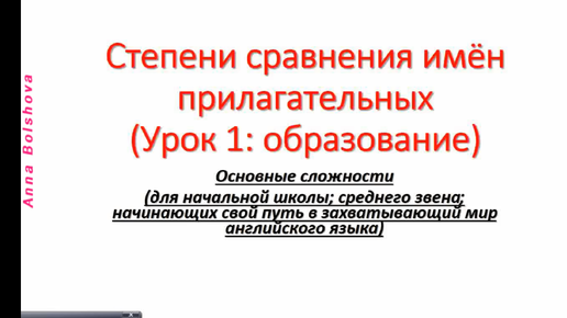 Степени сравнения имён прилагательных в английском языке для учеников начальной школы/среднего звена; взрослых (А1-А2). Теория.