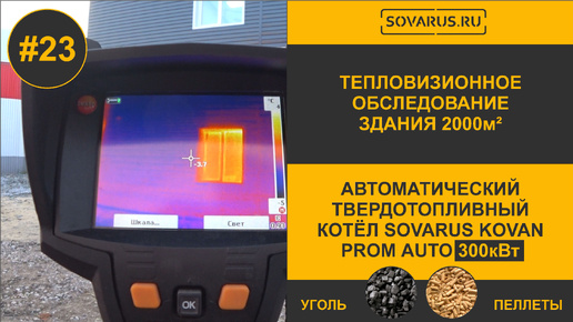 Тепловизионный обзор здания 2000кв.м отапливаемым котлом Соварус 300кВт