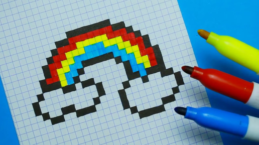 Как нарисовать радугу с облаками по клеточкам. Простой рисунок