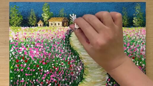 Рисование деревенской дороги _ Акриловая живопись _ Рисование дома